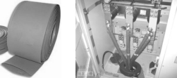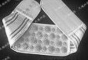 (8)GMT材料是采用连续玻璃纤维毡或连续玻璃纤维针刺毡作为芯材,然后与热塑性树脂——改性聚丙烯复合而成的一种片材(图600)。广泛应用于多种领域,全球GMT90%用于轿车上。轿车塑料零部件有800多种,发动机罩、仪表板骨架、蓄电池托架、座椅骨架、轿车前端模块、保险杠、行李架、备胎盘、挡泥板、风扇叶片、发动机底盘、车顶棚衬架等。还有GMT安全帽、建筑模板、军用箱、篮球架等。