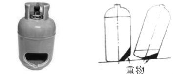 煤气什么时候烧完?没数。装压力表或称重太复杂。最好是快用完罐子出状态报信。采用创新原理4:增加不对称。罐下底做成部分斜面并加一重块,没气倾斜(图50),有气站直。