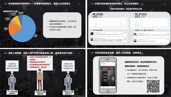 北京市公安局强制隔离戒毒所副所长、主任医师朱志伟建议:针对不同的人群,从百度的数据来看不同人群关注的热点是不同的,90到00后不关注毒品的危害并不代表他们知道毒品的危害,大部分对毒品危害缺乏认识。通过故事来引导公众,让他们知道拒绝毒品要从杜绝第一口开始。比如让90后和00后去聆听强制戒毒所里每一个戒毒人员背后的故事,并将毒品背后的心理、家庭以及社会方面的问题呈现给公众,引导公众从更深的层次去看待毒品。