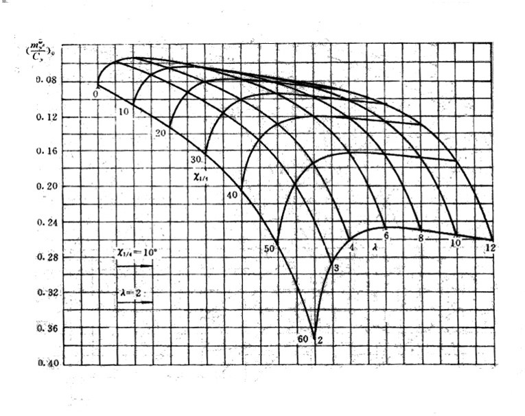 cmax,t为翼型最大厚度线的后掠角,λ为展弦比,若有翼尖小翼,则:λ有效=1.2λ