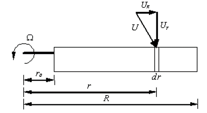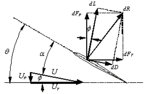 把每片桨叶看成由无限个桨叶微段(即叶素)组成,找出叶素的几何、运动特性和气动特性之间的关系,然后对一片桨叶进而对整个螺旋桨进行积分,得到螺旋桨的拉力和功率公式。