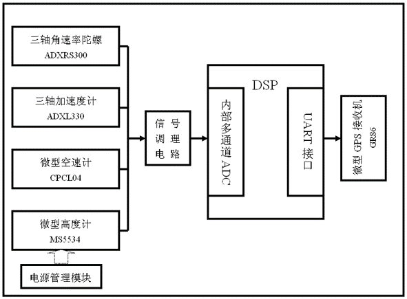● 组和导航系统主要包括组和传感器测量模块、信号调理电路、DSP和电源管理模块等组成。