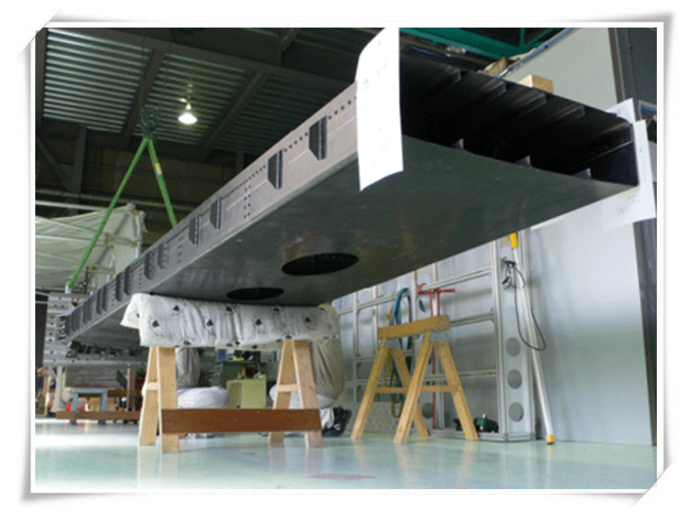 例如,该复合材料机翼采用整体成形工艺,机翼的上或下蒙皮首先在模具表面上预成形,然后在上下蒙皮上布置模具,固定预先成形的桁条、肋以及梁,然后在热压罐中一次成形,分别成形后的机翼上下蒙皮壁板再根据结构设计要求,采用机械连接或机械连接和胶接混合连接的方法形成机翼整体结构。