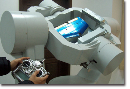 操作人员根据无人机随转台的动态运动状态或无人机三维运动动画,实时的给出遥控指令,作为仿真系统内伺服系统和动力系统的输入。