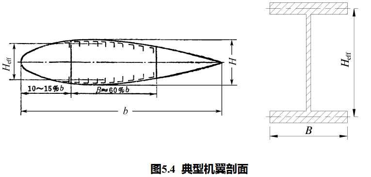 机翼某结构剖面的有效高度比定义为该剖面承力盒的有效高度Heff与该机翼剖面的最大高度H的比值: