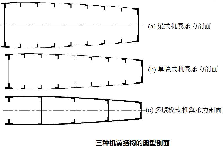 ● 当相对载荷较大、机翼相对厚度较小时,宜采用半硬壳式结构;
