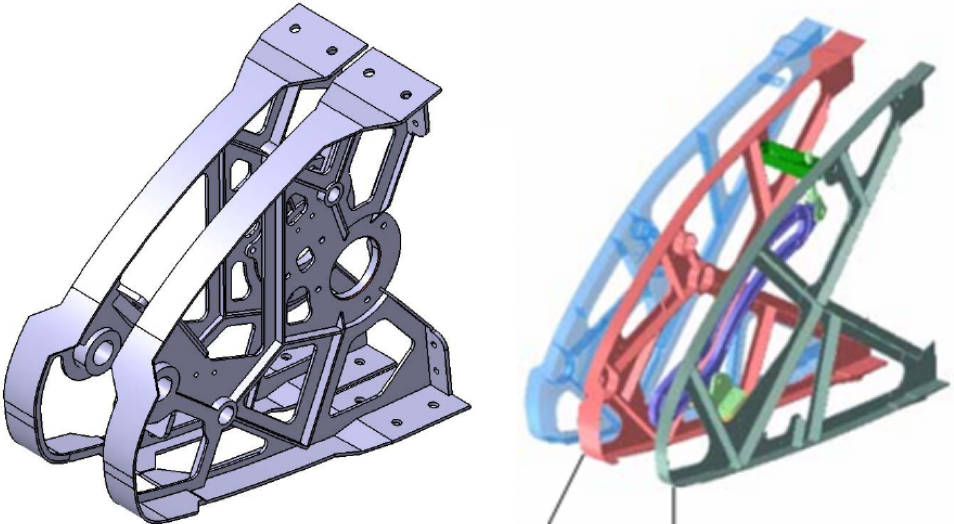 加强件是一个结构上的重要受力构件,一般都是结构刚度大,重量重。在一个结构上如果加强件布置过多,就会造成结构重量过重,因此在布置结构加强件时,加强件要能综合利用,通过结构合理设计,要能传递多种集中载荷。