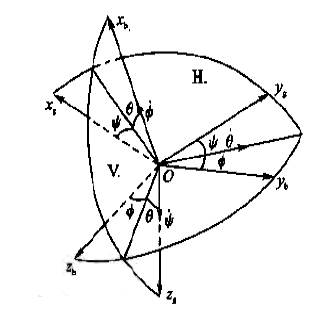 本体坐标系与地面坐标系可由飞行器的三个欧拉姿态角相联系。