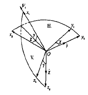 航迹坐标系与地面坐标系之间的关系可由航迹方位角和航迹倾斜角(爬升角)相联系。