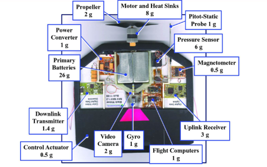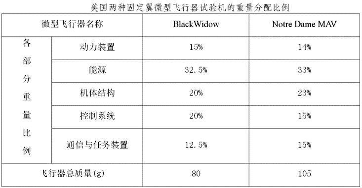 在起飞总量下如何分配和平衡各分系统的重量,一方面取决于微机电元器件的重量,另一方面与飞行性能的要求(主要是“续航时间”)关系极大。