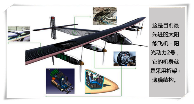 如果桁架结构直接暴露在外面,迎风阻力较大,因此一般会在桁架结构的表面蒙上质量很轻的薄膜,可以有效降低机体结构的压差阻力。