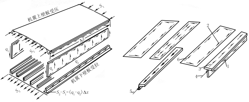 随着传递载荷的不断增加,梁式结构的传力特性逐步下降,为了能减轻结构重量,就需要改进结构传力形式,由原来的梁式集中传力改为半硬壳式结构的分布传力。