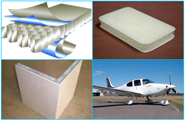 对于一些小载荷的平面结构,由于不能通过材料集中传递载荷,例如蒙皮结构,或者腹板结构。在飞机结构上,不可能缺少蒙皮,但是蒙皮上载荷很小,蒙皮不可能设计得很强,这样结构会很重,因此可以采用夹层结构。夹层结构特点是上下面板很薄,用于传递载荷,而芯层结构高度相对较大,但内部疏松,质量很轻,主要用于支持上下面板,以提高上下面板的横向弯曲刚度。