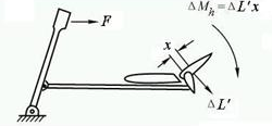 当舵面向上偏转时,舵面上产生的附加升力ΔL’对升降舵的旋转轴亦形成力矩ΔMh,通常称为铰链力矩。
