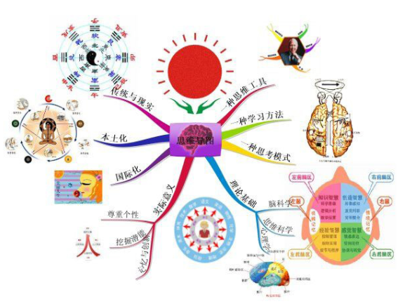 师: 这个问题问得很好。我们平时记笔记写文章是用文字和标点符号的,文章和笔记一般都是线性排列的,一行一行,按先后顺序进行的,对不对?这种逻辑与线性思考用到的主要是我们的左脑,我们的左脑是分管语言和文字的;如果我们用画思维导图的形式来思考和记录,思维导图本身就是一种放射状的图形,思维导图里面也包含大量的颜色与图形图像信息,那么这些颜色与图形会作用于我们的右脑,因为右脑是负责图形与形象思维的。因此,在画思维导图的过程中,我们的左脑和右脑都发挥了作用,这样更容易激发创新思维。