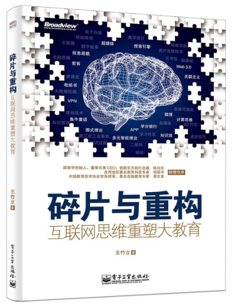 大家如果想进一步了解包容性思维,可以参看我的一本专著《碎片与重构:互联网思维重塑大教育》,如图12-2所示,这本书用了整整一章的内容阐述包容性思维,包括它的定义、具体方法和案例,两种观点的六种相互关系及其处理这些关系的原则,包容性思维与其他思维方式的异同点、包容性思维的价值和意义等。