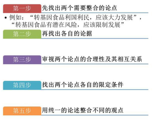师: 是的,包容性思维就是一种弥合分歧、整合不同观点的思维方法。我们刚才说过,其实每一种观点都有合理的一面,也有不合理的一面,在这种情况下合理,换一种情形也许就不合理了。如果我们把不同观点中的合理的一面都找出了,通过加上一些限定词或限定条件,把它们整合在一起,不就可以形成一个统一的观点了吗?