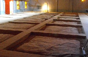 粮醅入池时,事先在池壁、池底撒适量窖泥养护液,每甑入窖后应进行踩窖,夏天需踩紧,冬天时可以稍疏松。