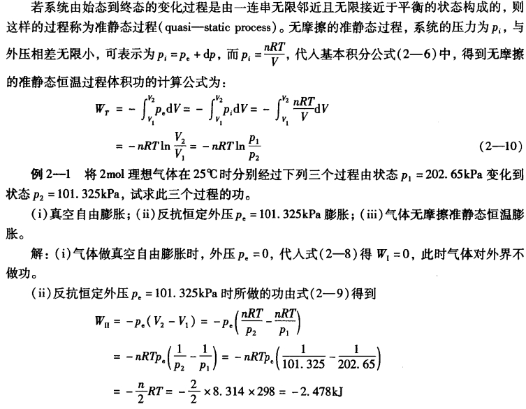 (iii)无摩擦准静态恒温过程中所做的功可以由式(2—10)给出: