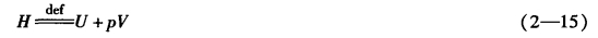 由于U、 p、 V均为系统的状态函数,其四则组合仍应是一个状态函数;由此,在热力学中可定义出一个新的状态函数,称为焓(enthalpy),用符号H表示,即: