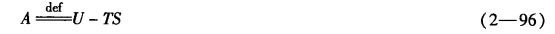 A称为亥姆霍兹自由能,或称亥姆霍兹函数。Helmholtz自由能的符号A取自德文Arbeit(意为“工作”“做功”)。将A的定义式代入式(2—95),得到: