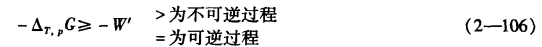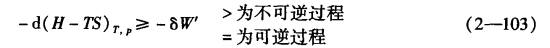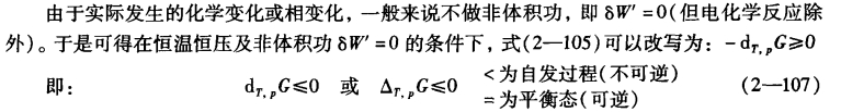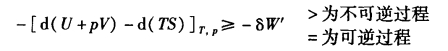 上两式表明,系统在恒温恒压可逆过程中所做的非体积功在数值上等于系统Gibbs自由能的减少;而系统在恒温恒压不可逆过程中所做的非体积功恒小于系统Gibbs自由能的减少值。
