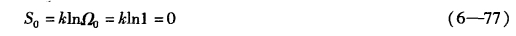 当T→0时,所有粒子都处于基态能级,此时Ω0=1,即把所有粒子放在一个能级上只有一个放法,系统只有一个微观状态,因此从玻耳兹曼定理,即式(6—15)可以得出结论:在0K时物质的熵值为零,即