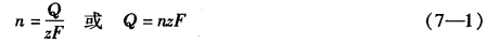取电子的得失数为z,通入的电量为Q,则电极上发生反应的物质的量n为: