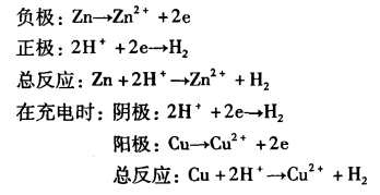 有一些电池,放电和充电时反应不同,电池起反应后不能复原。如由铜和锌电极插入硫酸溶液中组成的电池,在放电时的电极反应分别为: