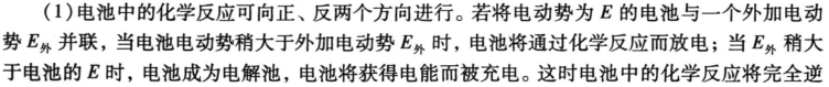 当外加电动势稍大于电池电动势时,电池充电,电极反应分别为:
