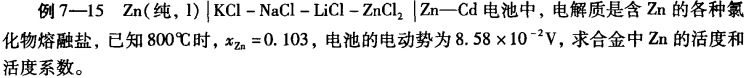 测定熔盐电池的电动势是研究熔盐性质的主要方法之一。与水溶液中相似,熔盐电池的电动势也等于两个半电池的电极电势的差值。现举例说明如下: