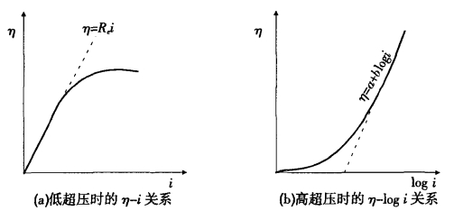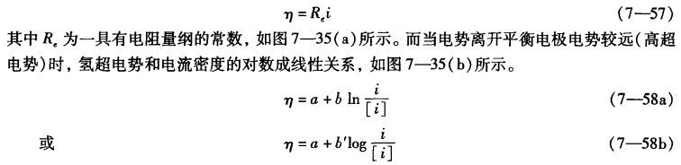 上式称为塔菲尔(Tafel)公式,其中a和b为常数。如图7—35(b)所示。