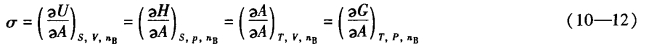 从表面热力学基本方程,根据热力学的全微分互易关系式,由(10—11)式可得: