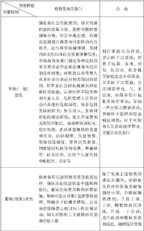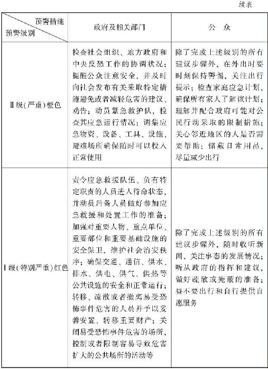 (二)完善恐怖主义危机预警级别的划分