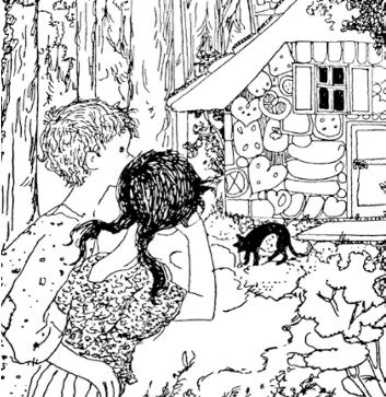 自打离开父亲的家,现在已是第三天早上。他们又开始走,却越走越陷入密林深处,要是不能马上得救,他们注定将饿死累死了。走到中午,他们突然发现一只雪白漂亮的小鸟,小鸟站在一根树丫上唱着歌,唱得动听极了,兄妹俩不由得停下来倾听。小鸟唱完了,便扇动翅膀,飞到他们面前。他们于是跟着小鸟走去,来到了一座小屋前面。小鸟降落在屋顶上,他俩到了跟前才发现,小屋竟是面包做的,屋顶上铺盖着蛋糕,窗户却是明亮的糖块儿。“这下该咱们美美吃一顿啦!”亨塞尔说,“我要吃一块屋顶,格莱特,你可以吃窗户,它准很甜。”说着,他便举起手掰下一小块屋顶来,尝尝味道怎么样。格莱特却贴近窗户,吱儿吱儿地吮那糖玻璃。正吃着吮着,冷不丁地从屋里传出一丝儿细小的声音: