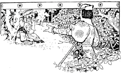 一天早晨,一个英俊的青年在森林中行走。这时阳光明媚,鸟儿歌唱,凉风轻拂着树叶,青年满心喜悦和欢乐。就在他一个人都遇不到时,突然看见那个老巫婆,她正跪在地上用镰刀割草。她已经割好整整一捆草,旁边还放着两个装满野梨和野苹果的篮子。“嗨,老太太,”青年说,“你怎么搬得动这么多东西!”“我不搬不成啊,亲爱的先生,”她回答说,“有钱人家的少爷不用干这个。可农民有句话叫作:别再东张西望,你的背像弯弓一样。你愿意帮我吗?”见青年站在旁边不走,老婆子问。“你的背直挺挺的,你腿脚还利索,干这个很容易。再说我的家离这儿不远,就在这座山背后的荒原上。你很快就能走到。”青年对老婆子充满同情,说,“虽然我父亲不是农民而是位富有的伯爵,但为了让你看看并非只有农民才能背重东西,我愿意帮你背回去。”“如果你愿试一试,那我很高兴。”她说,“你肯定得走一小时的路,可这对你算得了什么呢?那儿的梨和苹果你也得捎上。”青年听说要走一小时,便有点疑虑,可老婆子不放过他,把草捆拴在他背上,再把两只篮子挎在他手腕上。“你瞧,这挺轻松不是?”她说。“不,不轻松。”青年满面愁容地回答,“草捆压在背上挺沉,好像里面尽装的大石头;苹果和梨也重得像灌了铅。我差不多快憋气了。”他很想把东西全放下,但是老太婆不让。“瞧啊,”她讥讽道,“这位年轻先生不肯搬我这个老太婆常常搬的东西。说漂亮话他在行,真干起来却想逃之夭夭。还站在那儿干吗呢?”她继续说,“走吧,快抬腿儿!没有人会替你背的。”只要走的是平路,年轻人还能坚持,但当他们来到山前,不得不朝上爬,脚下的石头又像活了一样往下滚,他就吃不消了。汗珠一颗颗挂在额头,流到背上,叫他感觉一会儿热,一会儿冷。“老婆婆,”他说,“我不行了,想休息一会儿。”“没有的事儿!”老太婆回答,“我们到了以后,你才能休息,现在你可得往前走。谁知道你打的什么主意呢?”“老婆婆,你好不讲理!”青年说,想放下草捆,但是枉费心机。包袱牢牢地挂在背上,好像长在了一起似的。他转过来,转过去,怎样也摔不掉它。老太婆哈哈大笑,高兴得拄着拐杖乱蹦乱跳。“别生气,亲爱的先生,”她说,“你的脸红得跟火鸡一样了。耐心地背着你的包袱吧,到家后我会多多给你酒钱的。”青年无可奈何,只好认命,耐心地跟在老太婆后面慢慢走去。老太婆好像越来越矫健,他的负荷却越变越沉重。突然,她往上一跳,跳到草捆上坐起来。她虽然枯瘦如柴,却比最胖的乡下姑娘还沉。年轻人两膝打颤,可要是不往前走吧,老婆子又会用树枝和麻秆抽打他的腿。他气喘吁吁地爬上山,终于到了老婆子的家,这时他差不多要倒下了。那些鹅看见老婆子,便扇动翅膀,伸着脖子朝她跑来,一路嘎嘎叫着。一个上了年纪的女人手里拿着根树枝,跟在鹅后面走来。她又高又壮,丑得像个母夜叉。“妈妈,”她对老婆子说,“出了什么事,你在外面待这么久。”“没事儿,我的女儿,”老婆子回答,“我没遇到什么坏事。恰恰相反,这位好心的先生帮我背东西,我走累了,你想想,他还连我一起背上。这段路对我们来说根本不算远,我们很高兴,还一直闹着玩儿哩。”终于,老婆子走过来,从年轻人背上取下草捆,接过他腕上的篮子,非常和蔼地看着他说:“现在坐到门前的长凳上去好好休息休息。你理应得到你的那份报酬,也一定少不了。”然后她对牧鹅女说:“我的女儿,你进屋去,你不适合同一位年轻的先生单独在一起,咱们不应火上加油,否则他会爱上你的。”青年听了哭笑不得,心想,这样一个宝贝,哪怕她再年轻三十岁也打动不了我的心啊。这时候,老婆子像抚摸孩子一样抚摸她的鹅,随后和女儿一道进屋去了。年轻人躺在野苹果树下的一条长凳上。空气温馨宜人,四周铺展着绿色的草地,草地上开满了野麝香和无数各色各样的花。一条清清的小溪从草地中间流过,阳光照在水面上闪闪发亮,白鹅有的来来去去地在散步,有的在水中嬉戏。“这儿真美呀,”青年说,“可我累得眼皮都抬不起来了,我得睡一会儿。但愿别起风,把我的腿从身上吹跑,它们真软得跟火绒似的。”