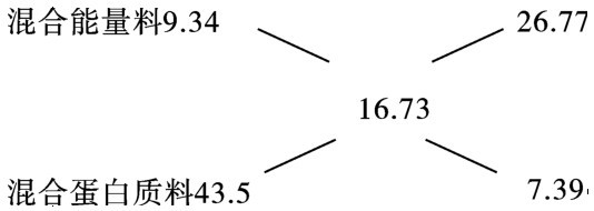 交叉法的缺点是:在配制饲料时不能同时考虑多项营养指标,而且在饲料种类较多时,用此法计算既繁琐又复杂。因此,此法通常用于简单的能量混合料、蛋白质补充料的配制计算及饲料营养浓度的计算。