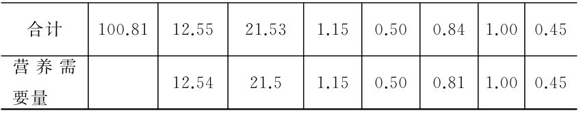 第四步,验算营养指标,并计算出合计数。见表45“合计”一栏。