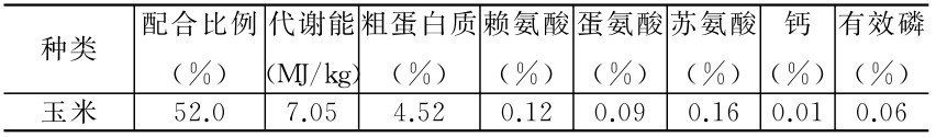 用试差法计算饲料配方举例如下:以玉米、次粉、大豆粕、棉籽粕、玉米蛋白粉、磷酸氢钙、石粉为原料,设计肉仔鸡0~3周龄阶段的饲料配方。