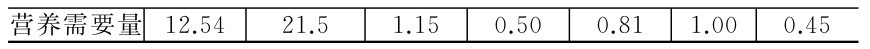 计算至此为止,另外补充0.30%的食盐,补充0.26%氯化胆碱(有效成分含量为50%),额外添加0.3%的复合预混合饲料(包括除胆碱外的多种维生素、多种微量元素、抗生素、抗氧化剂等)。配方及营养水平见表47。