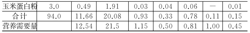 第一步,确定所选原料的营养含量(表44),以粗蛋白质为重点计算指标。