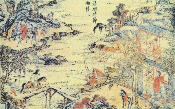 由于清明节气是在冬至后一百八天,这与传统的寒食节时间相近,节气与节日便逐渐合为一体。南北朝梁人宗懔《荆楚岁时记》云:“去冬节一百五日,即有疾风甚雨,谓之寒食,禁火三日,造饧大麦粥。”一直到宋代,宋人吴自牧《梦粱录》依然记载道:“寒食第三日即清明节,每岁禁中命小内侍于阁门用榆木钻火,先进者赐金碗绢三匹,宣赐臣寮巨烛。”古代寒食节最长可达一个月。所以,寒食节与清明节合并也就在所难免。
