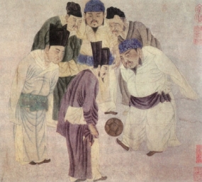 据说唐僖宗非常喜欢踢球,他曾对俳优石野猪夸口说:“腾若步打进士,当得状元。”宋徽宗也非常喜欢蹴鞠,高俅之所以深得徽宗宠信,并被封为太尉,就是因为他“踢得好脚气球”。