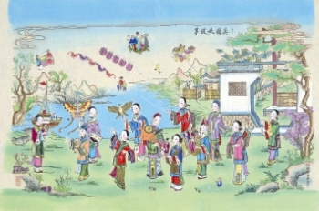 放风筝也是清明时节人们所喜爱的活动。风筝据传在我国大约有两千多年的历史,特别是唐朝以后更为流行。清人潘荣陛所著《帝京岁时纪胜》记载:“清明扫墓,倾城男女,纷出四郊,提酌挈盒,轮毂相望。各携纸鸢线轴,祭扫毕,即于坟前施放较胜。”古人还认为清明的风很适合放风筝。《清嘉录》中说:“春之风自下而上,纸鸢因之而起,故有‘清明放断鹞’之谚。”
