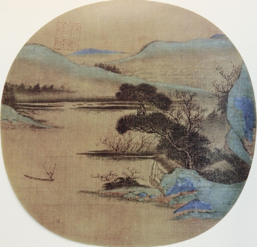 隋朝展子虔所作的《游春图卷》绢本设色,纵43厘米,横80.5厘米 。此图在辽阔、平远的山川景色中点缀着人马和舟船,描绘了一派明媚的春天气息和士人踏青郊游的情景,充分体现了展子虔时代和他本人的山水画风与成就,反映了这一时期山水画的基本风貌。由他开创的青绿山水的端绪,给后世以深远影响。