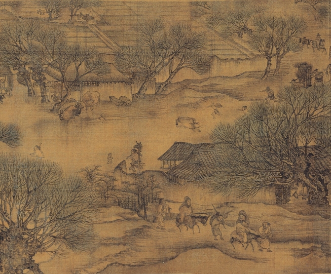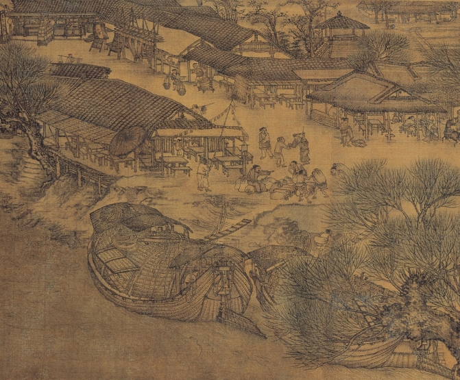 北宋张择端创作的《清明上河图》,是一幅举世闻名的绘画杰作。图为绢本,纵25.8厘米,横534.6厘米,浅设色。画卷描绘清明之际,发生于京师汴梁(今开封)郊外汴河上土桥及东角子门市廛通衢形形色色的场景。《清明上河图》共画人物684人,牲畜96头,房屋122间,树木174株,船25艘,车15辆,轿8顶,刻画工细,各如其分,笔精墨妙,文采斐然,真实反映了宋代清明时分的民俗风情。