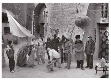 社火队被请进地坑院,主家以求吉祥富贵。