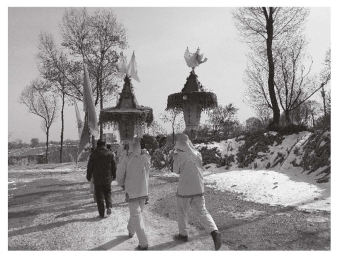 元宵节一大早,村里的社火队便来到土地庙前,祭祀庙里诸神。