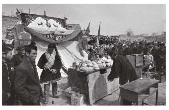 会一般都在村里最大的场院上进行,上方搭建帐篷作为龙王的临时行宫,众人围在四周祭拜。