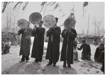 ”是摹拟鼓声的象声词。土族自称为“勃勃拉”,译过来就是“巫师表演的跳神仪式”。